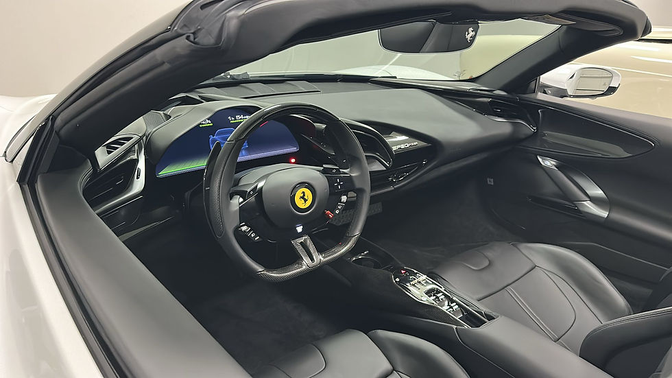 Dieser SF90 Spider verbindet kompromisslose Leistung mit maximaler Exklusivität. Durch die umfangreiche Carbon-Ausstattung, modernste Hybridtechnologie und seine makellose Historie als deutsches, servicegepflegtes Fahrzeug im Neuwagenzustand ist dieses Exemplar die perfekte Wahl für Sammler und Enthusiasten, die einen außergewöhnlichen Ferrari in Bestzustand suchen.